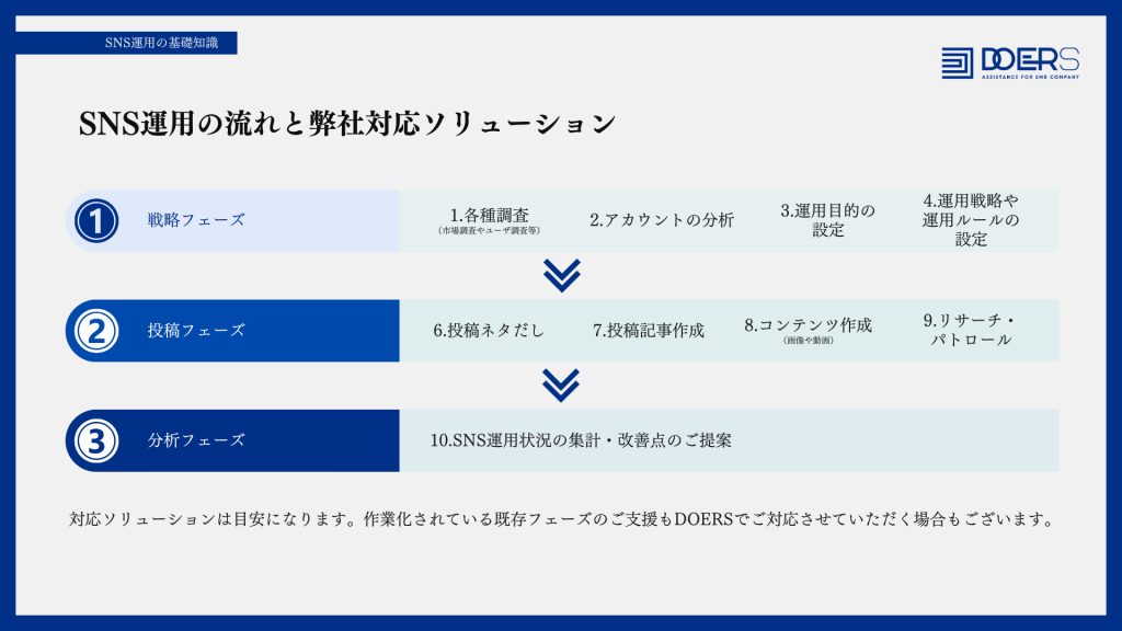 SNS運用の流れと弊社対応ソリューション